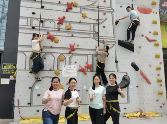 攀巖環(huán)節(jié)將活動推向高潮。在專業(yè)教練指導(dǎo)下,團(tuán)員們穿戴護(hù)具,依次挑戰(zhàn)8米高的巖壁。面對陡峭的賽道,隊(duì)員們以“敢為人先”的勇氣迎難而上,指尖緊扣巖點(diǎn),腳步穩(wěn)扎穩(wěn)打,用汗水詮釋“奮斗是青春最亮麗的底色”。許多人從最初的緊張到逐漸突破自我,最終登頂時(shí)全場歡呼。“巖壁上的每一步都需要專注和勇氣,就像工作中攻克難關(guān)一樣,當(dāng)代青年亦需在挑戰(zhàn)中突破自我!”大家感慨道。
