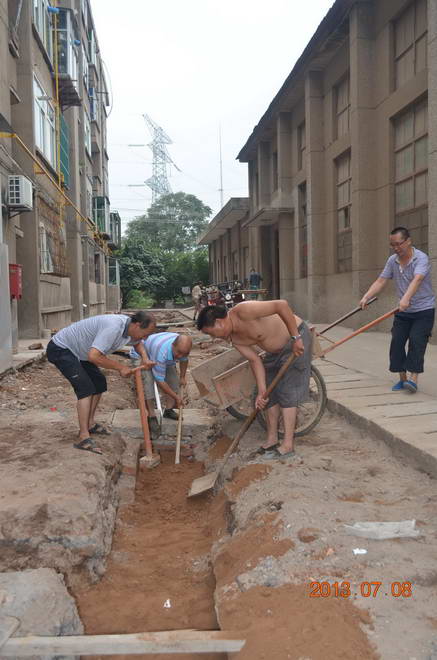 10號家屬樓是第六分公司于上世紀(jì)80年代中期修建的一棟老家屬樓。6月下旬,10號家屬樓前出現(xiàn)了地面滲水、裂縫,物業(yè)管理中心迅速派人查找原因,經(jīng)查發(fā)現(xiàn)其原因是地埋上下上管道年久失修滲水造成。分公司領(lǐng)導(dǎo)了解此事后,隨即召開辦公會議,急職工群眾之所急,在發(fā)展資金緊張的情況下,擠出資金,要求盡快聘請具有資質(zhì)的單位抓緊施工,盡快使10號樓的住戶正常生活。由于各方努力工作,截止發(fā)稿之日, 10號家屬樓上下水地埋管道改造工程已近尾聲,同時完成了樓前的道路返修硬化。這也是我分公司繼15號樓上下水管道改造之后的又一惠民工程,改善了職工家屬的居住環(huán)境,對單位的和諧穩(wěn)定具有積極的促進(jìn)作用。