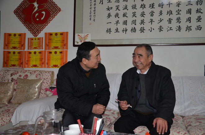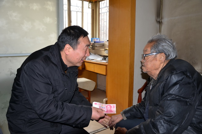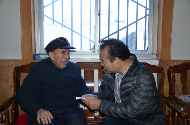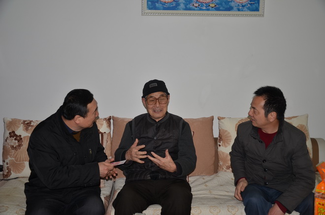 圖為工會(huì)主席夏元鵬慰問老干部、抗戰(zhàn)老兵農(nóng)光謀