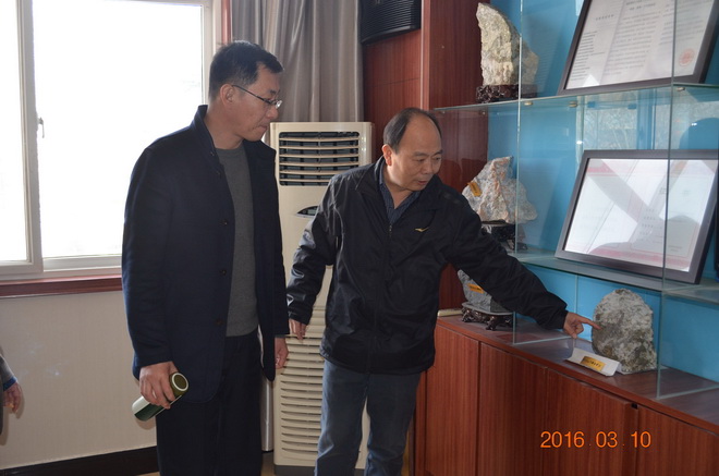 座談會結(jié)束后,劉總一行來到隊三樓會議室,興致勃勃的參觀了我隊地質(zhì)樣品展臺。王隊長就我隊近年來企業(yè)文化建設情況向劉總作了介紹。