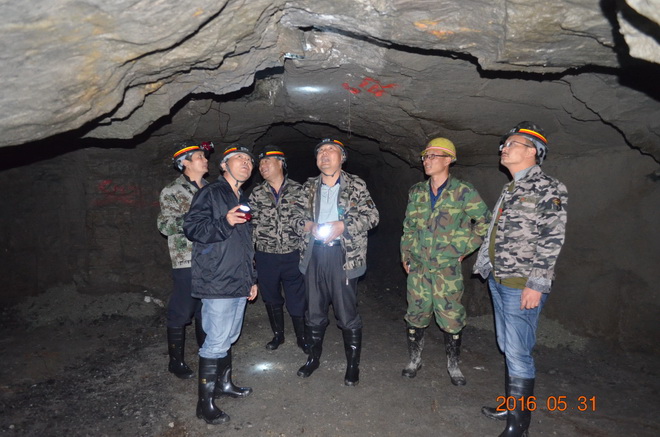 王隊長一行首先來到工程公司鎮(zhèn)安坑道鉆項目工地,顧不上休息就進了坑道開始工作,詳細了解工程進度、安全措施。隨后又馬不停蹄的來到隊礦權(quán)中心“鎮(zhèn)安桂林溝鉬普查”項目組,詳細檢查了填圖工作、防護用品的配備等。在兩項目駐地,分別召開了安全生產(chǎn)現(xiàn)場會。