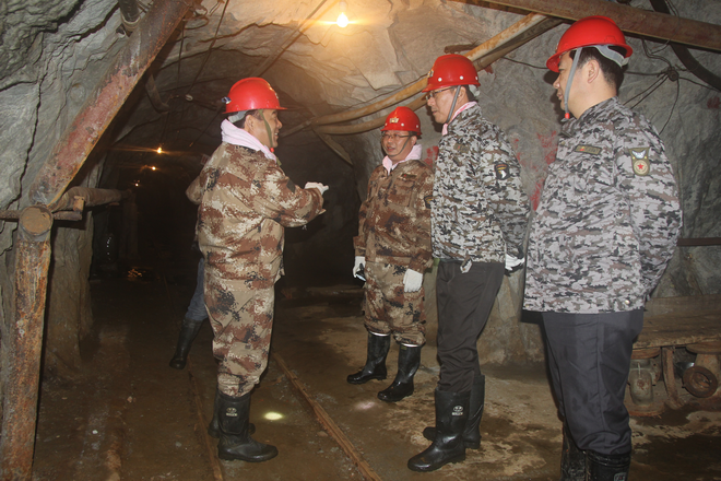 這次檢查是總公司按照省上要求統(tǒng)一部署的非煤礦山安全生產(chǎn)大檢查。上午在與興地公司干部職工座談會上,劉建勤聽取了隊長劉曉東關(guān)于我隊2016年生產(chǎn)經(jīng)營目標(biāo)任務(wù)完成、安全生產(chǎn)管理情況及隊黨委書記王戰(zhàn)社關(guān)于我隊黨的建設(shè)、和諧穩(wěn)定工作及“兩學(xué)一做”學(xué)習(xí)教育情況工作匯報。隨后劉建勤到興地公司黨支部黨員活動室建檢查指導(dǎo)工作。下午,劉總一行深入到隊興地公司898豎井、185一坑、二坑、850炸藥庫、秦太選廠等重點(diǎn)項目進(jìn)行了實地檢查,認(rèn)真檢查了有關(guān)安全生產(chǎn)文件、規(guī)章制度、會議記錄、檢查記錄和安全臺賬等,并深入到898豎井下對該井安全設(shè)施運(yùn)行情況進(jìn)行了細(xì)致檢查。