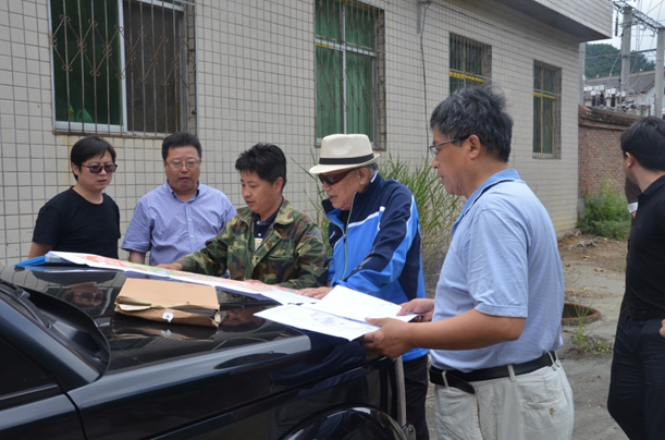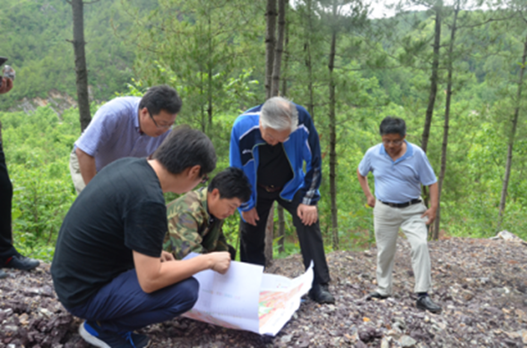 下午二點(diǎn)左右,老部長(zhǎng)一行在劉曉東隊(duì)長(zhǎng)和總工白和的陪同下到達(dá)洛南縣石門(mén)鎮(zhèn)項(xiàng)目部駐地,雖然年近八旬,但精神矍鑠,神采奕奕,不顧鞍馬勞頓,即讓技術(shù)人員將圖紙攤在了汽車(chē)引擎蓋上,聽(tīng)取了隊(duì)長(zhǎng)劉曉東、總工白和對(duì)商洛地區(qū)紫瑪瑙玉石礦賦存情況及全省寶玉石礦調(diào)查工作進(jìn)展的匯報(bào)。