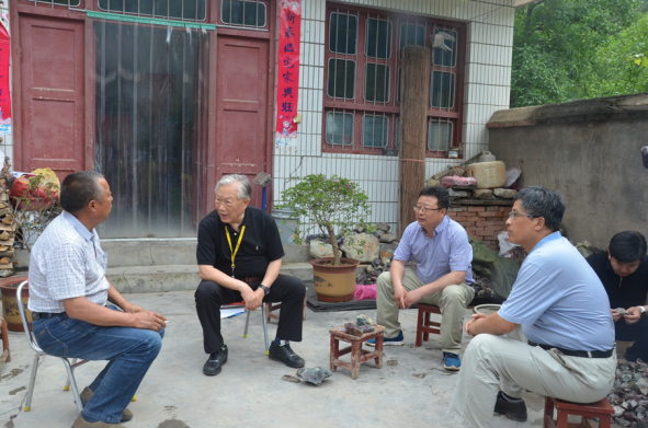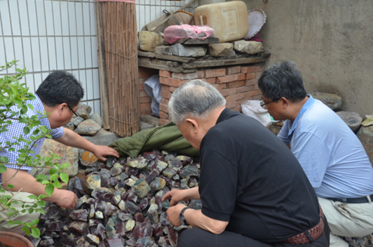 上山察看后,老部長(zhǎng)又來(lái)張華溝礦點(diǎn)劉吉村村民王新海的院子,察看了當(dāng)?shù)卮迕耖_(kāi)采的瑪瑙礦石,調(diào)研瑪瑙石礦民采情況,并在村民院子,饒有興趣的與我隊(duì)寶玉石礦項(xiàng)目部技術(shù)人員和村民進(jìn)行了交流,關(guān)切地詢問(wèn)技術(shù)人員的數(shù)量、生活及車(chē)輛租用費(fèi)用等情況。項(xiàng)目負(fù)責(zé)高虔認(rèn)真地一一回答了老部長(zhǎng)的問(wèn)詢。