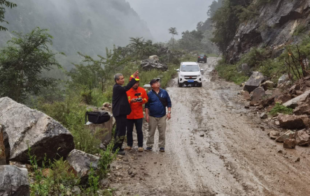 領(lǐng)導(dǎo)對(duì)崩塌現(xiàn)場險(xiǎn)情查看指導(dǎo)