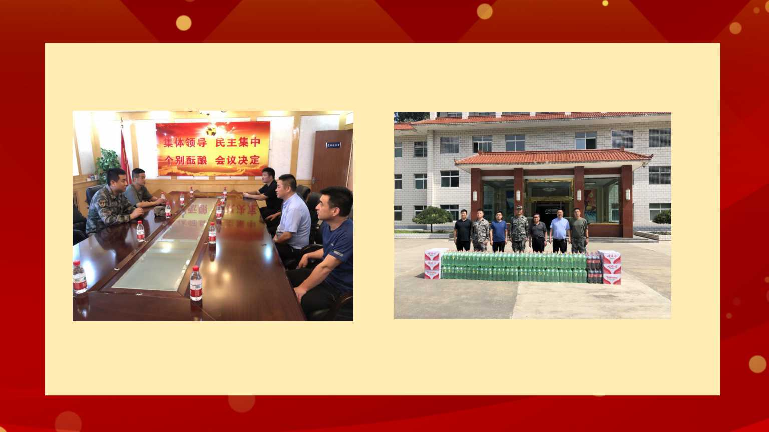 “八一”建軍節(jié)前夕,興地公司走訪慰問(wèn)了中國(guó)人民解放軍62141部隊(duì),送去了慰問(wèn)禮品。雙方進(jìn)行了親切座談,共敘軍企魚(yú)水深情。