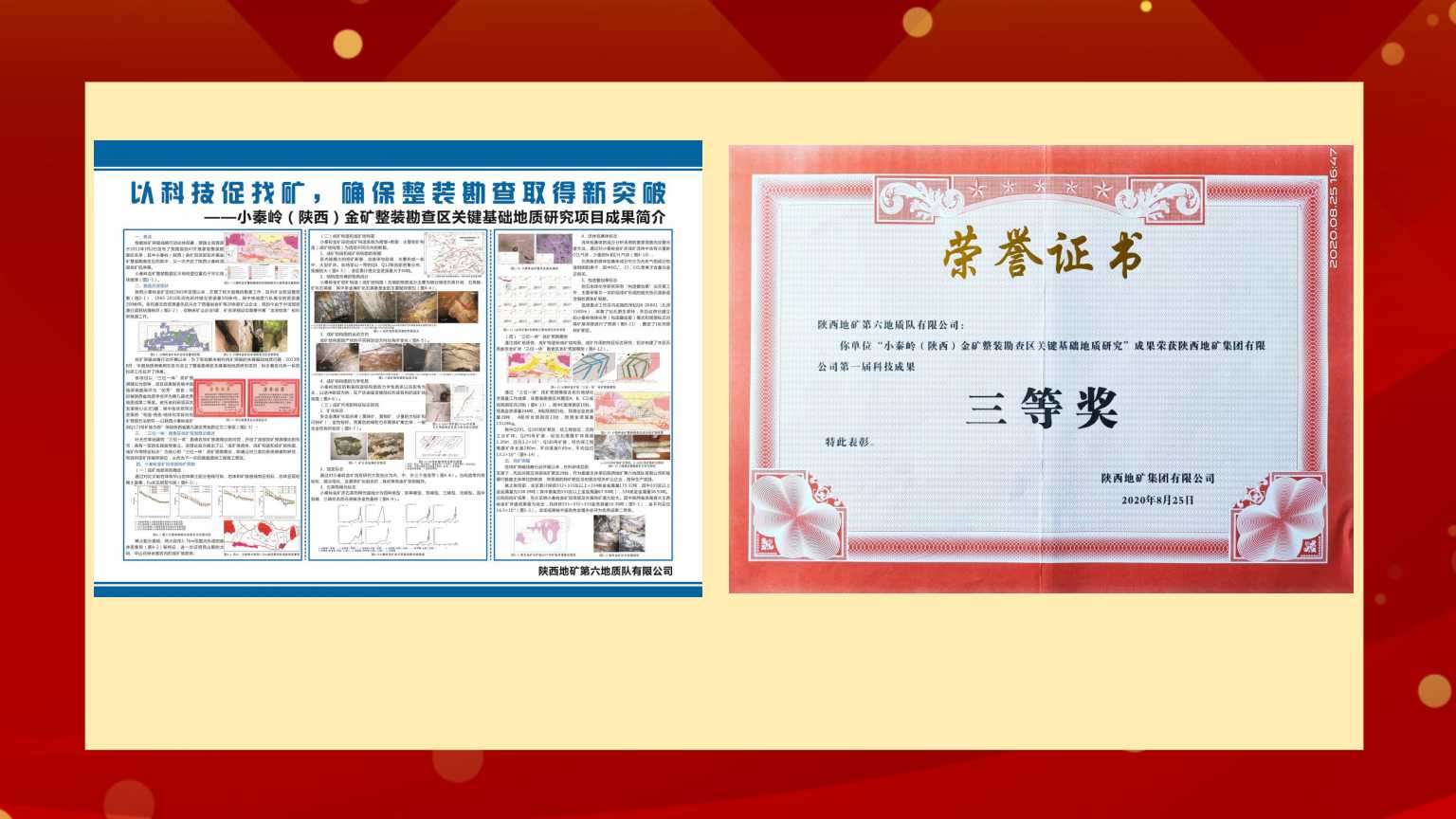 公司地質(zhì)調(diào)查所申報(bào)的小秦嶺(陜西)金礦整裝勘查區(qū)關(guān)鍵基礎(chǔ)地質(zhì)研究項(xiàng)目喜獲“科技成果三等獎(jiǎng)”。