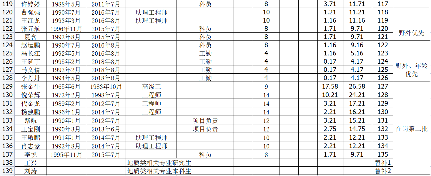 截至2021年底,我公司現有在冊職工421人,其中事業(yè)身份373人,企業(yè)身份48人。在崗職工182人,下崗及內退239。各類專業(yè)技術人員116人,其中地質類專業(yè)技術人員83人,其他專業(yè)技術人員33人。教授級高工1人,高級工程師22人,工程師41人;初級及以下52人,管理人員16人,工人289人,其中技師15人。